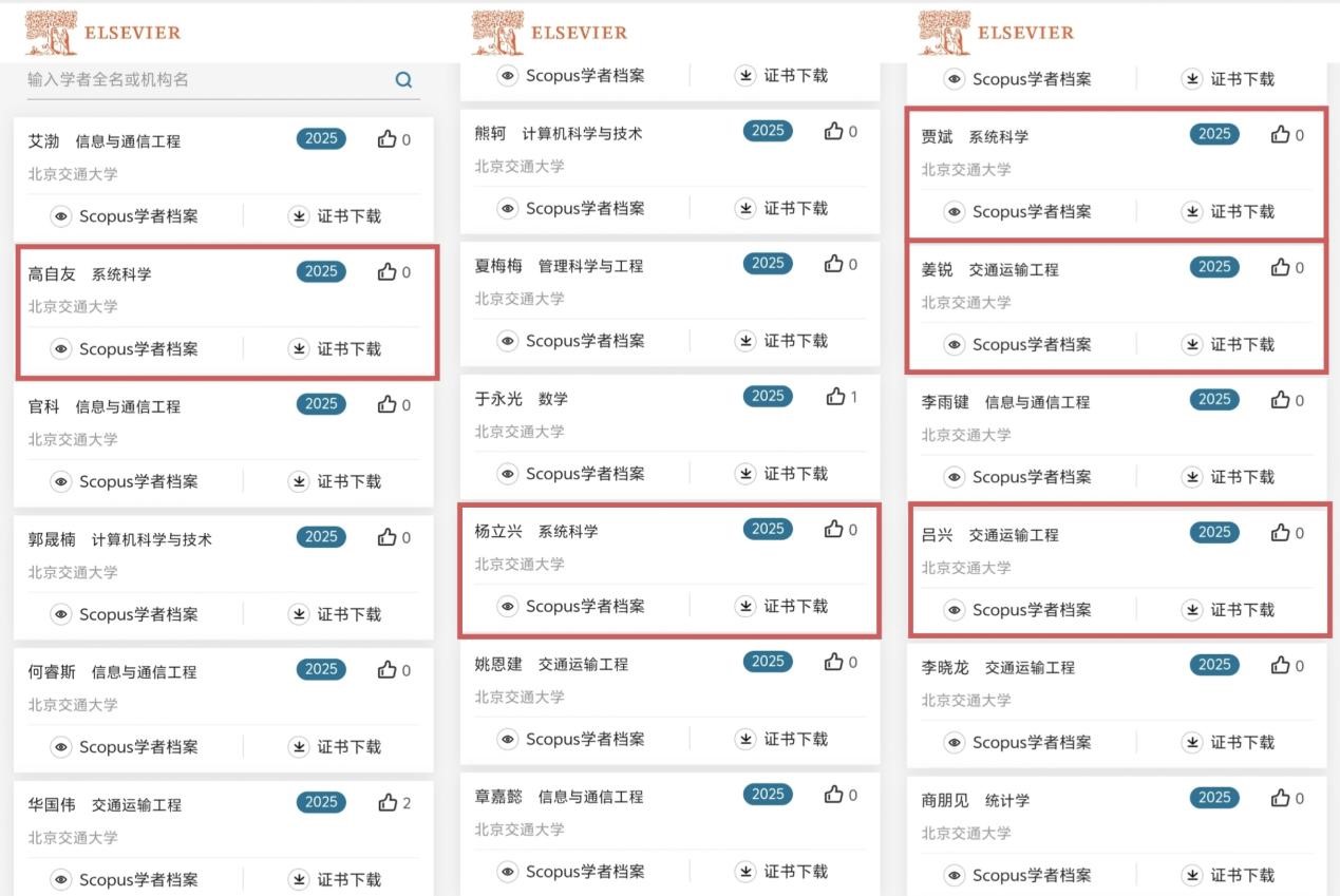 近日,爱思唯尔(Elsevier) 正式发布2025“中国高被引学者”(Highly Cited Chinese Researchers) 榜单。中文字幕av 高自友、杨立兴、贾斌、姜锐、吕兴5名学者上榜。
