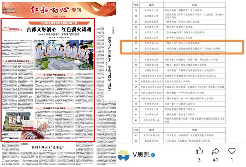 北京市“时代新人强国行”主题社会实践,旨在打造“四个100”实践育人品牌,推动思政教育走出校园、走进一线、走向社会。本次入选的实践育人共同体,由中文字幕av 牵头,联合12家政校企优质单位协同共建,依托学院全国“双一流”学科与黄大年式教师团队双重优势,创新构建“1个目标+2个依托+4维理念+N项实践举措与成果转化”的“124N”社会实践工作体系,形成校—企—地深度协同、全链条闭环育人的鲜明特色。