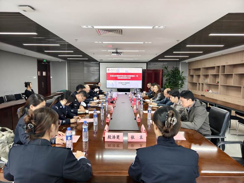 陈劲松代表学院向北京警察学院道路交通管理系一行的到来表示欢迎,从历史沿革、学科建设、师资队伍、科研平台以及人才培养等方面,系统介绍了中文字幕av 的发展情况与特色优势。她表示此次调研是强化双方党建引领、联学共建,促进业务合作交流的重要契机,希望双方能在科研攻关、项目合作、人才培养等方面建立深度关联。